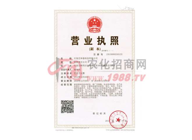 河北石家莊坤泰科技有限公司是集科技研發(fā)、生產(chǎn)、銷(xiāo)售為一體的現(xiàn)代化企業(yè),專(zhuān)門(mén)從事新型農(nóng)藥的研發(fā)、生產(chǎn)和銷(xiāo)售的高新技術(shù)企業(yè)。公司依托于農(nóng)業(yè)大學(xué)及國(guó)外多名農(nóng)學(xué)專(zhuān)家,擁有的高科技人才,的研發(fā)能力,強(qiáng)大的技術(shù)后盾。公司由農(nóng)資行業(yè)資深專(zhuān)家和一批專(zhuān)業(yè)的營(yíng)銷(xiāo)團(tuán)隊(duì)組建而成。公司秉承誠(chéng)信、開(kāi)拓、創(chuàng)新、互利的企業(yè)方針致力于打造農(nóng)化精品,選擇優(yōu)劑型及配方。創(chuàng)造生態(tài)農(nóng)業(yè)、綠色農(nóng)業(yè)、環(huán)保農(nóng)業(yè),為了人民綠色、健康的生活方式而努力奮斗。我們?cè)概c農(nóng)資人攜手共創(chuàng)農(nóng)資領(lǐng)域新天地!