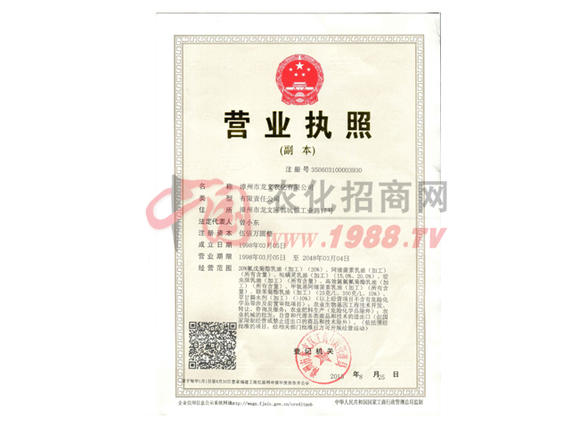 漳州市龍文農(nóng)化有限公司前身為福建省龍海農(nóng)藥廠,是福建省家農(nóng)藥定點生產(chǎn)企業(yè),在我國個五年計劃末期,由福建省工業(yè)廳投資,龍溪行政專署工業(yè)科籌辦興建的國有大型農(nóng)藥生產(chǎn)企業(yè),1957年底建成投產(chǎn),曾為地方國營漳州市農(nóng)藥廠,1961年更名為龍海農(nóng)藥廠,公司生產(chǎn)的三鹿牌系列農(nóng)藥是福建產(chǎn)品,為我國的農(nóng)業(yè)生產(chǎn)做出過杰的貢獻。企業(yè)1998年改制更名為漳州市龍文農(nóng)化有限公司,2013年與福建省科豐農(nóng)藥有限公司全面重組,企業(yè)重組后整合了公司的優(yōu)勢資源,有力的提升了企業(yè)的綜合實力和核心競爭力。